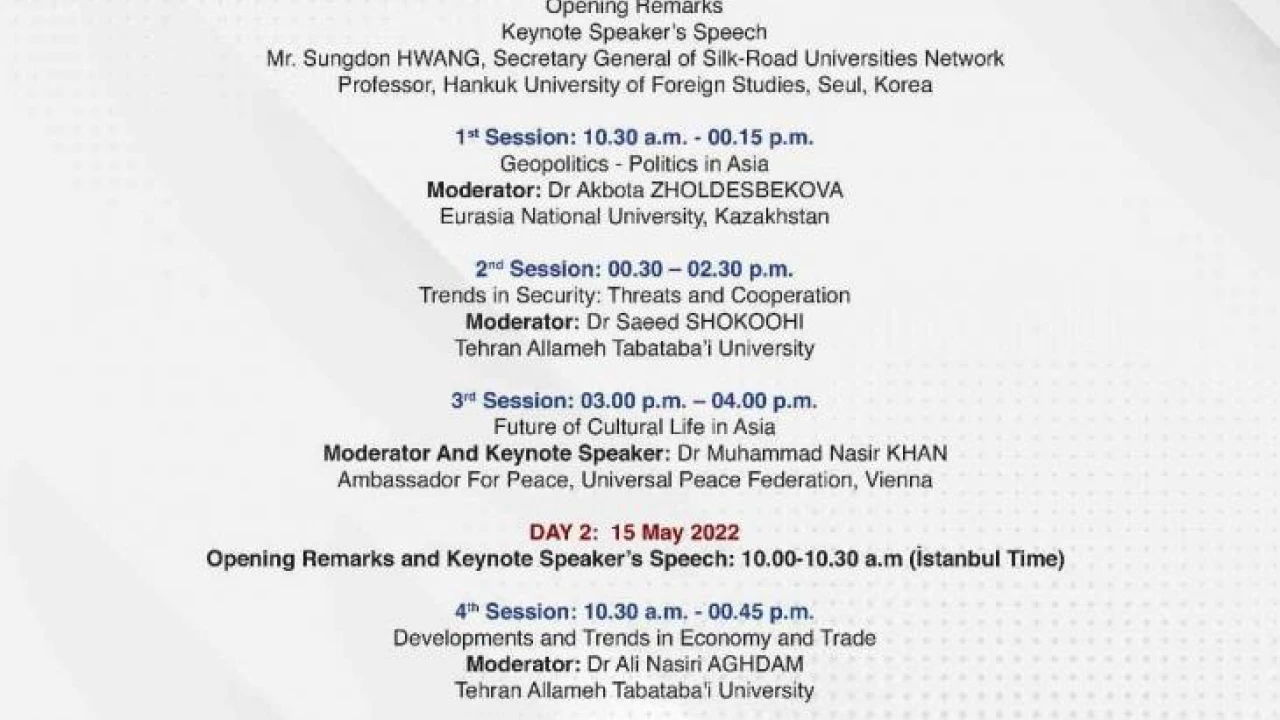 İstanbul Arel Üniversitesi ve Allameh Tabataba'i Üniversitesi (Tahran) Asya'da Geleceğin Dinamikleri konulu uluslararası kongreyi 14 ve 15 Mayıs'ta çevrimiçi olarak gerçekleştirecek. Kongre, Asya'daki güncel zorluklar ve fırsatları analiz edip tartışmak ve geleceğin dinamiklerini ve senaryolarını değerlendirmeyi amaçlıyor.