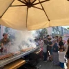 Adana'da bir güzellik merkezi sahibi, 1 tonluk dana kesip iş yerinin önünde dev mangal kurup vatandaşlara kebap ziyafeti çektirdi.