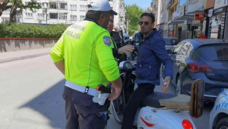 Bursa'nın İnegöl ilçesinde Emniyet Müdürlüğü Trafik ekipleri motosiklet sürücülerine yönelik uygulama başlattılar. Kask kullanmayan sürücülere cezai işlem uygulandı. Cezai işlem makbuzunu yırtıp atan sürücü Raşit I., polis ekiplerine tepki gösterip şov yaptı.