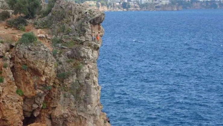 Turizm şehri Antalya’da son günlerde havaların ısınması ile dünyaca ünlü Konyaaltı Sahili vatandaşların ve tatilcilerin akınına uğruyor. Pazar gününü değerlendirmek isteyen vatandaşlar, sahile gelerek serin suyun keyfini sürdü. Sahile gelen bazı gençlerin macera uğruna yaptıkları ise adeta yürekleri ağza getirdi. Gençlerden bazıları 30 metre yükseklikteki falezlerden denize balıklama atlayış gerçekleştirdi. Tatilcilerin yüreklerini ağzına getiren gençler, ölümle burun buruna geldi.