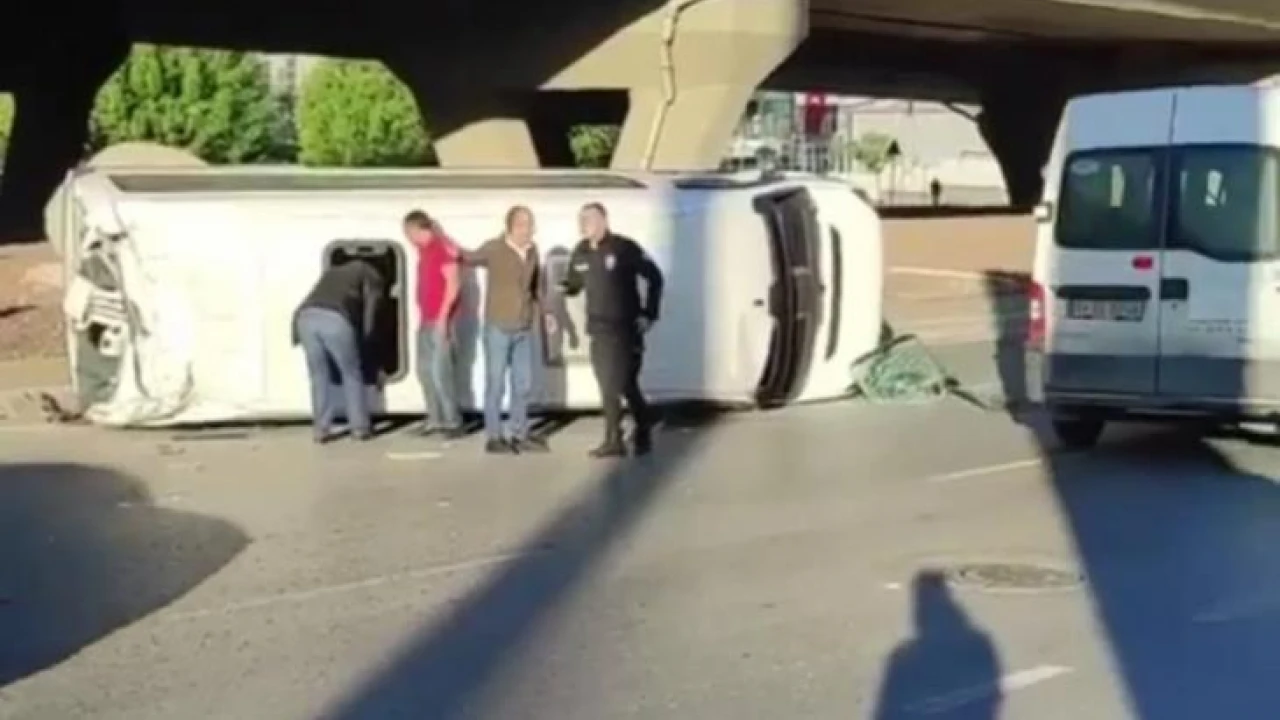 5 kişinin yaralandığı kazada, devrilen servis minibüsünün şoförü olay yerinden kaçtı