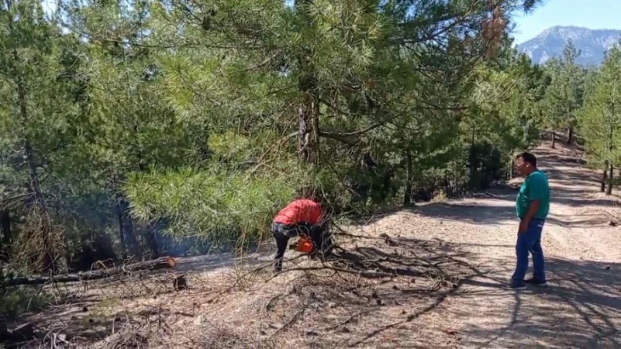 15 yer ekibi ise bölgenin kayalık ve sarp olması nedeniyle yangına müdahale edemiyor. Yangının daha fazla alana yayılmasını önlemek için de bazı bölgelerde ağaçlar kesiliyor.