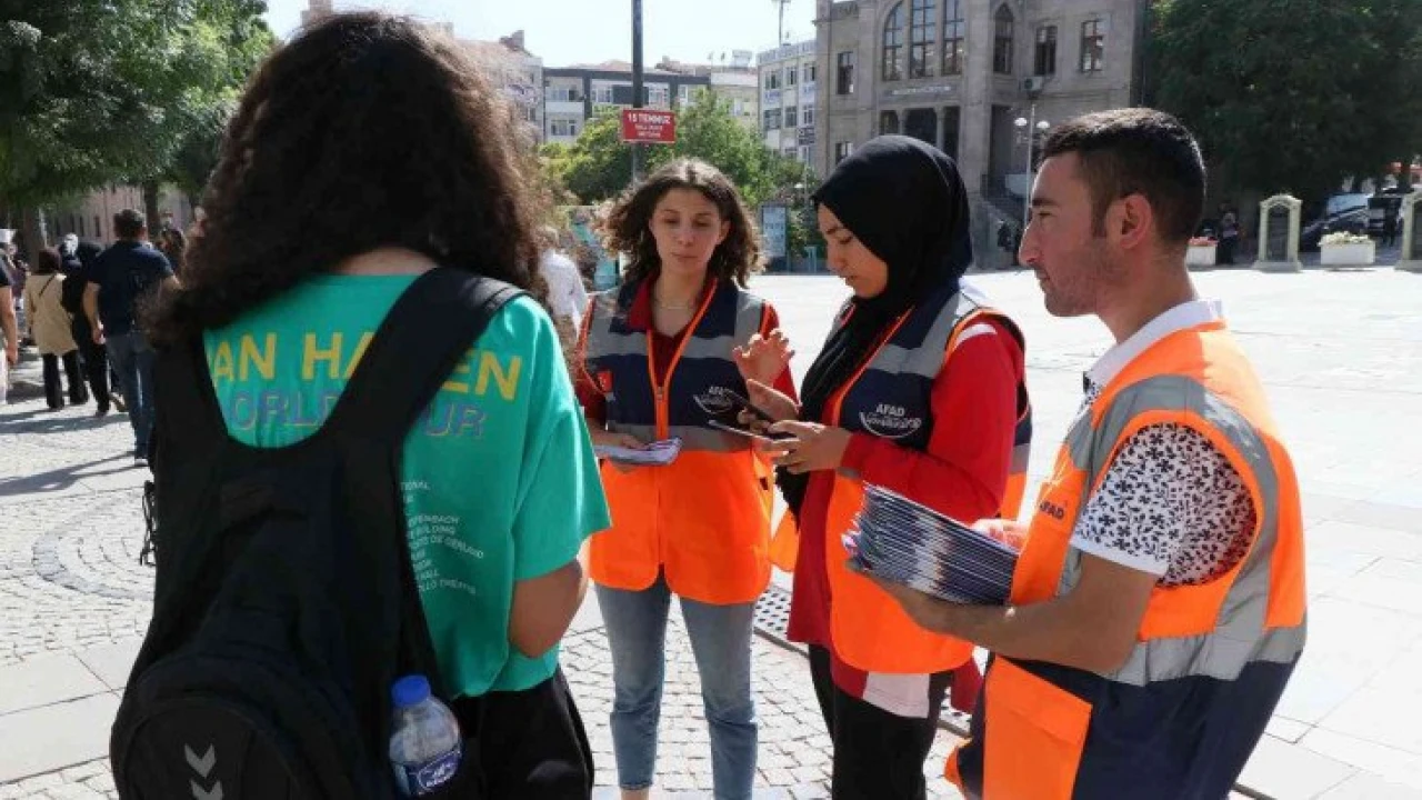 Aksaray'da 17 Ağustos Büyük Marmara Depremi'nin 23. yıldönümünde farkındalık çalışması gerçekleştiren İl Afet ve Acil Durum (AFAD) Gönüllüleri sokakta gezerek vatandaşlara broşür dağıtıp depreme karşı bilinçlendirdi.
