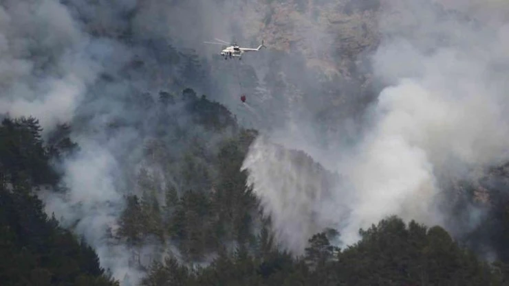 Alanya'daki yangına helikopter, 200 işçi ve 22 arazözle müdahale ediliyor