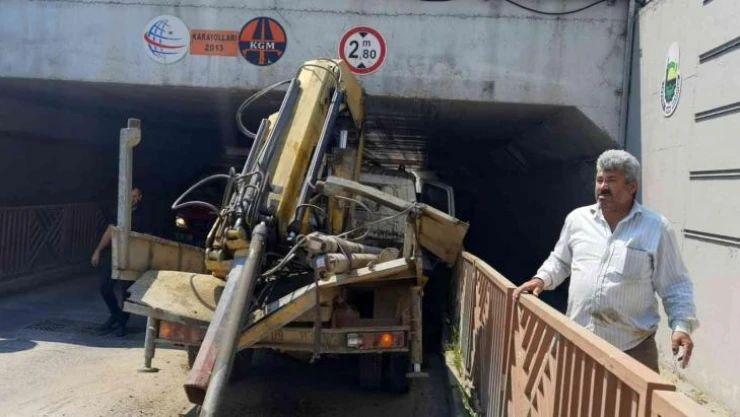 Bursa'nın İnegöl ilçesinde meydana gelen kazada su sondaj aracı, alt geçide çarparak ikiye bölündü. Kazada 1 kişi yaralandı.