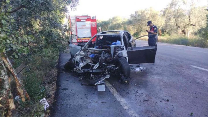 Bursa'da meydana gelen trafik kazasında kontrolden çıkan bir otomobil yol kenarındaki ağaca çarparak alev aldı. Kazada Kazakistan uyruklu sürücü sıkıştığı otomobilde feci şekilde can verdi.