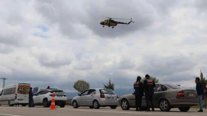 Aksaray'da İl Jandarma Komutanlığı 4 farklı noktada hava destekli trafik denetimi yaptı.