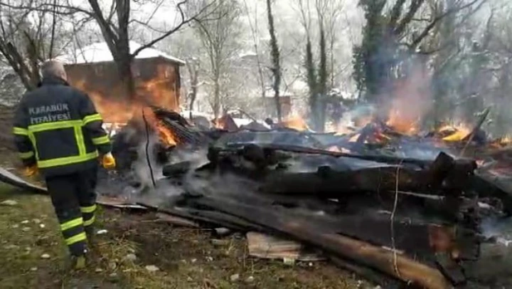 Karabük'ün Yenice ilçesinde çıkan yangında alevlere teslim olan iki ev küle döndü.