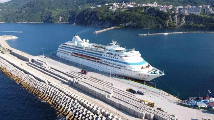 Bartın'ın tarihi ve turistik ilçesi Amasra, Rusya'dan demir alan Astoria Grande adlı kruvaziyer gemisinin yolcularını ağırladı.