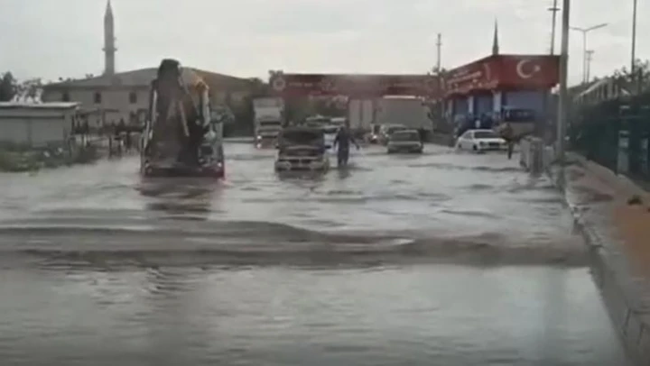 Ankara'nın Sincan ilçesinde etkili olan sağanak yağış sonrası Sincan Cezaevi önü göle döndü.