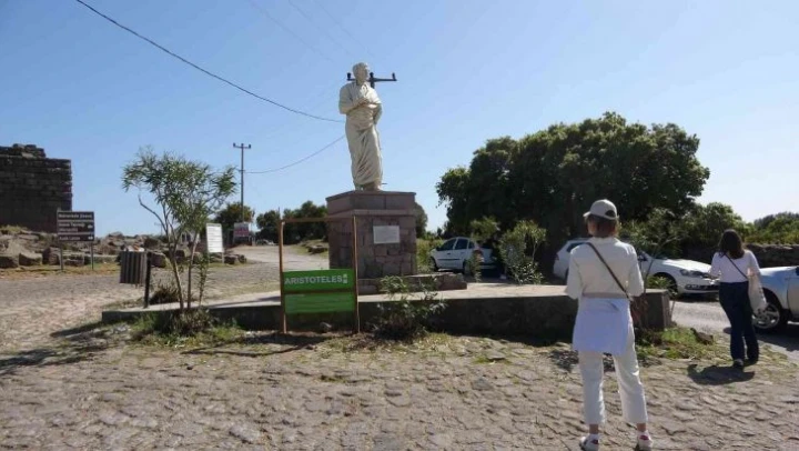 Çanakkale'nin Ayvacık ilçesine bağlı Behramkale köyü sınırları içinde yer alan Assos Antik Kenti içerisinde bulunan Aristo heykeli yenilendi.