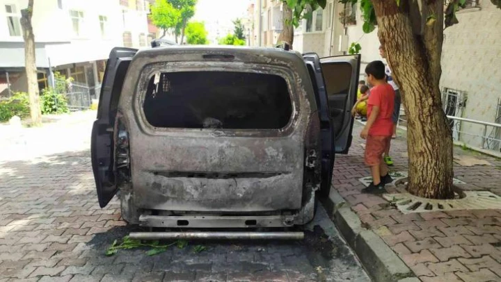 İstanbul Bahçelievler'de park halindeki hafif ticari araç alev alev yandı. Mahalleli yangına kovalardaki su ile müdahale etti.