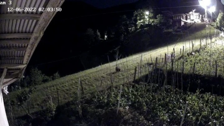 Bahçeye ekilen ürünlere zarar veren ayı kameralara yakalandı