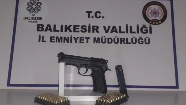 Balıkesir İl Emniyet Müdürlüğü Asayiş Şube Müdürlüğü ekipleri genel güvenliği ve asayişi sağlamak amacıyla Karesi, Ayvalık, Burhaniye, Edremit, Erdek, Gönen ve Susurluk İlçelerinde yapılan çalışmalarda çeşitli suçlardan aranan 17 şahıs gözaltına alınırken, adli makamlara sev edilen 4 şahıs tutuklandı. Yapılan aramalarda; 2 adet ruhsatsız tabanca ve tabancalara ait 8 adet fişek, 1 adet ruhsatsız tüfek ve tüfeğe ait 25 adet kartuş, 1 adet kurusıkı tabanca ve tabancaya ait 100 adet fişek ele geçirildi.