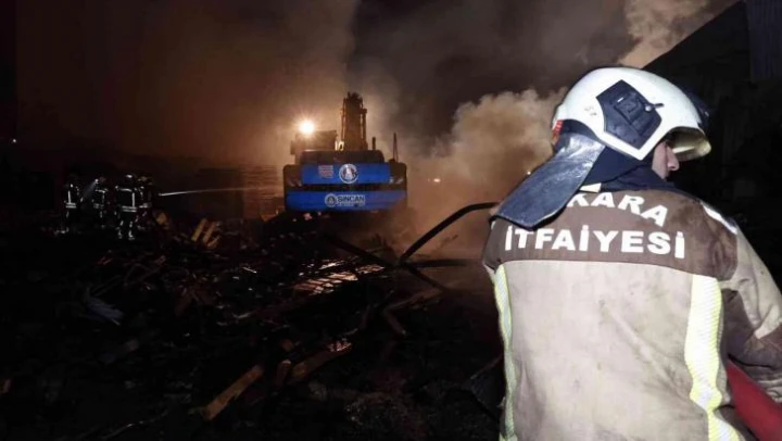 Ankara'nın Sincan ilçesindeki palet üretilen bir iş yerinde çıkan yangın itfaiye ekiplerinin müdahalesi sonucu söndürüldü.