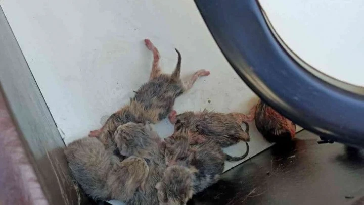 Karabük'te bir kız yurdunun deposunda baza içerisinde doğum yapan anne kedinin yavruları itfaiye ekiplerince kurtarılarak öğrencilere teslim edildi.