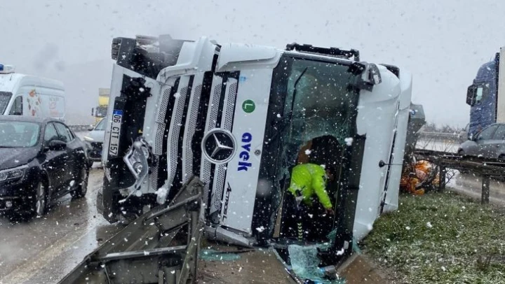 Edinilen bilgiye göre, Y.Y idaresindeki 06 CTT 157 plakalı içecek yüklü tır, kar yağışı sebebiyle kontrolden çıkarak bariyerlere çarptıktan sonra devrildi. Arkasında seyreden L.D. idaresindeki 06 JVG 26 plakalı tır da duramayarak bariyerlere çarptı. Kazayı gören diğer sürücülerin ihbarı üzerine olay yerine polis, sağlık ve itfaiye ekipleri sevk edildi. İtfaiye ekipleri yaralı sürücü Y.Y'yi tırdan çıkartarak sağlık ekiplerine teslim etti. Sağlık ekipleri yaralı sürücüyü Bursa Şehir Hastanesi'ne kaldırdı. Kaza nedeniyle otobanda kilometrelerce araç kuyruğu oluştu. Tırların çekici yardımıyla kaldırılmasının ardından yol açıldı.