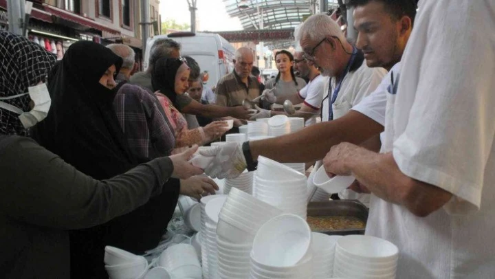 Bursa'nın tarihi Tuz Pazarı'nda 30 yıldır devam eden aşure etkinliği bu yıl da binlerce vatandaşın katılımıyla gerçekleşti.