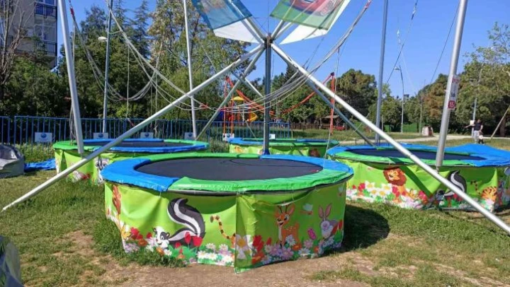 Büyükçekmece'de parkta kurulan seyyar oyun alanında küçük bir kızın trambolinde zıpladığı sırada mekanizmanın bağlı olduğu halat koptu. Yürekleri ağza getiren olayda zıpladığı trambolinin üzerine düşen küçük çocuğa bir şey olmazken, o anlar kızını eğlenirken çekmek isteyen annenin cep telefonu kamerasına yansıdı.