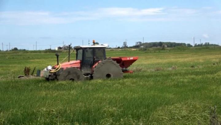 Samsun'un Bafra Ovası'nda 130 bin dekar alanda ekimi yapılan çeltik alanlarında sivrisinekle mücadele çerçevesinde larva ve yabani ot ilaçlama çalışmaları sürüyor.
