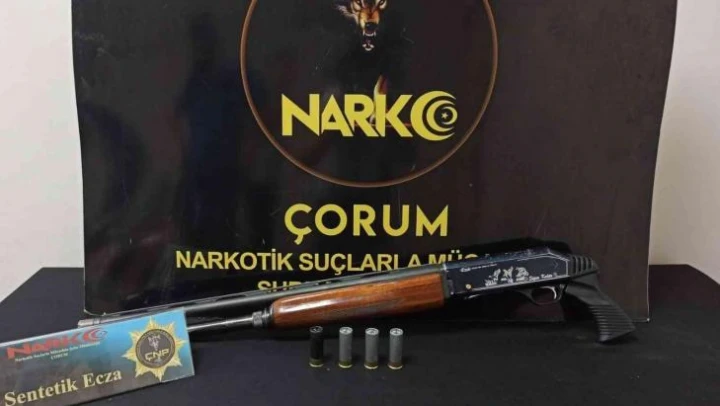 Edinilen bilgiye göre, Nartotik timleri il merkezinde bulunan iş yerine operasyon düzenlediler. İş yerinde ve şahsın yapılan üst aramasında 70 tablet sentetik ecza ile 1 adet ruhsatsız av tüfeği ve bu tüfeğe ait 4 adet fişek ele geçirildi.