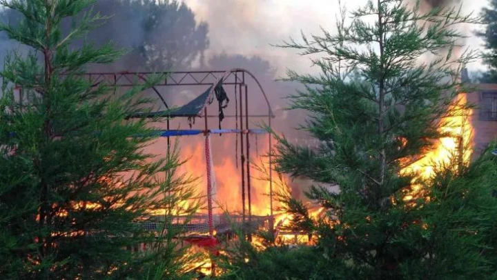 Kocaeli'nin Kartepe ilçesinde eğlence kasabası olarak bilinen Kovboy Park'ta elektrik kontağından yangın çıktı. Bir ahşap bina ve atış poligonu alevlere teslim oldu.