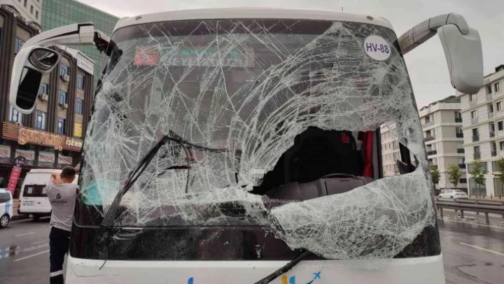 Bu sırada İstanbul Havalimanı'na yolcu taşıyan bir otobüs, yağmur nedeniyle kayganlaşan yolda duramayarak kaza yapan 3 servis aracına çarptı. Yaşanan kazada toplamda 6 kişi yaralandı. Olay yerine gelen sağlık ekipleri yaralıları olay yerindeki ilk müdahalenin ardından hastaneye kaldırırken, yaşanan o kaza anları çevredeki bir vatandaşın cep telefonu kamerasına yansıdı.