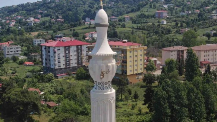 Giresun'un Eynesil ilçesinde mimarisi ve minaresi ile tek olma özelliğine sahip olan Yeşil Camii'nin semaver şeklindeki minaresi dikkat çekiyor.