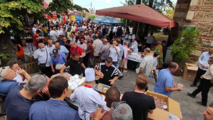 Bursa'da 600 yıldır yılda bir kez pişen çorbadan içmek isteyenler uzun kuyruklar oluşturdu.
