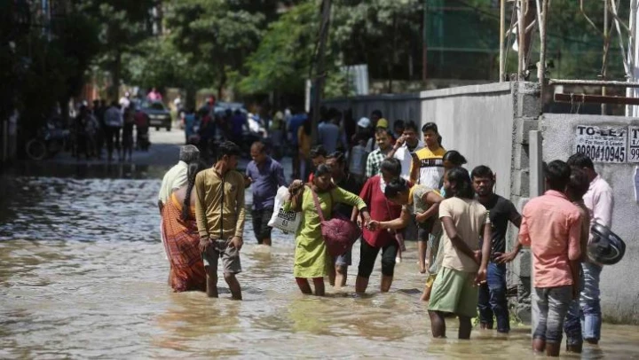 Hindistan'ın Bangalore kentinde cadde ve sokaklar sel nedeniyle göle dönerken, mahsur kalanlar kepçe ve teknelerle kurtarıldı.