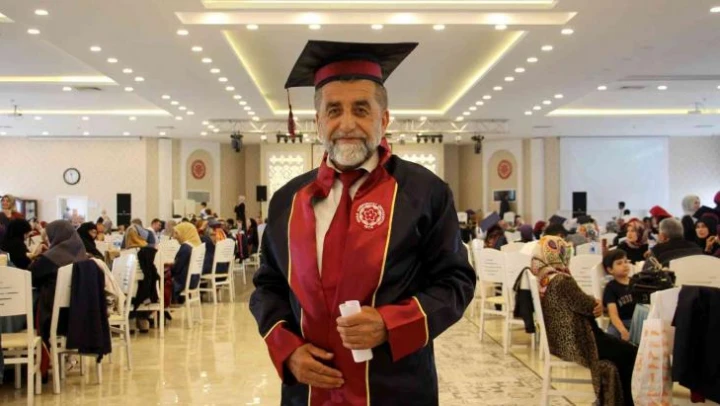 Sivas Cumhuriyet Üniversitesi İlahiyat Lisans Tamamlama programında öğrenim gören 62 yaşındaki Adnan Coşkun, torunları yaşındaki öğrencilerle birlikte mezuniyet sevinci yaşadı.