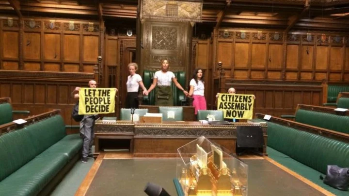 Extinction Rebellion çevre grubu aktivistleri, İngiltere parlamentosunda protesto düzenledi. İklim değişikliğiyle ilgili düzenleme yapılmasını talep eden aktivistler, Avam Kamarası'ndaki başkan koltuğuna kendilerini yapıştırdı. Extinction Rebellion Sözcüsü Nuala Lam tarafından yapılan açıklamada Westminster Sarayı ve çevresindeki protestoya yaklaşık 50 kişinin katıldığı belirtildi. Lam ayrıca, iklim değişikliği konusunda 'sıradan insanlara danışılmasına' izin veren 'demokratik bir sistem' çağrısında bulunduklarını da sözlerine ekledi. Olayın ardından açıklama yapan bir Avam Kamarası sözcüsü ise, 'Parlamento binasındaki olayın farkındayız. Şu anda durumla acil olarak ilgileniyoruz' ifadelerini kullandı.