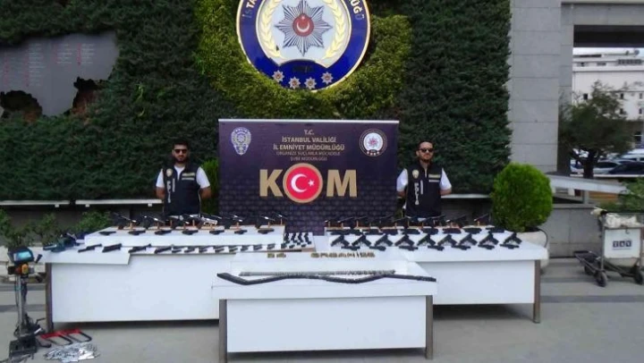 İstanbul'da düzenlenen kaçakçılık operasyonunda çok sayıda kurusıkı tabanca ve tabanca yapımında kullanılan malzemeler ele geçirildi. Silahlarla bağlantılı 8 şüpheli gözaltına alındı.
