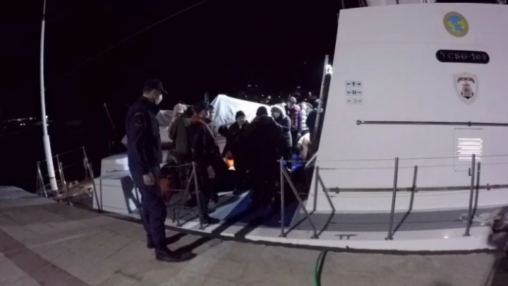 İzmir'in Çeşme ilçesi açıklarında, yasa dışı yollarla yurt dışına çıkmak isteyen 32 düzensiz göçmen yakalandı.