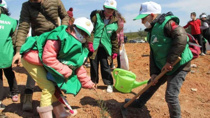 Derince'nin konuşmasının ardından öğrenciler, orman ve ağaç konulu şiirlerini okudu. Ardından 6 bin 35 adet fidan, 40 dekar alanda toprakla buluşturuldu.