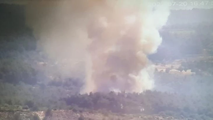 İzmir'in Buca ilçesinde ormanlık alanda çıkan yangına ekipler havadan ve karadan müdahale ediyor.