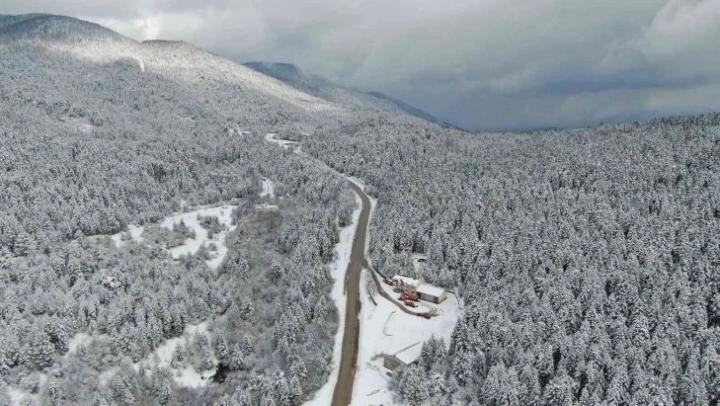 Karabük'te nisan karı doğayı beyaz örtüyle kapladı