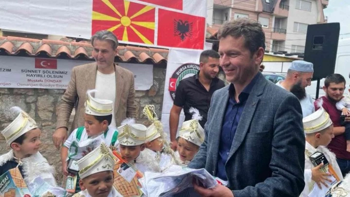 Osmangazi Belediyesi'nin Bursa Kırçovalılar Derneği işbirliğinde Kuzey Makedonya Cumhuriyeti'nin Kırçova kentinde düzenlediği geleneksel sünnet şöleninde bu yıl 44 çocuk dualar eşliğinde sünnet olarak erkekliğe ilk adımı attı.