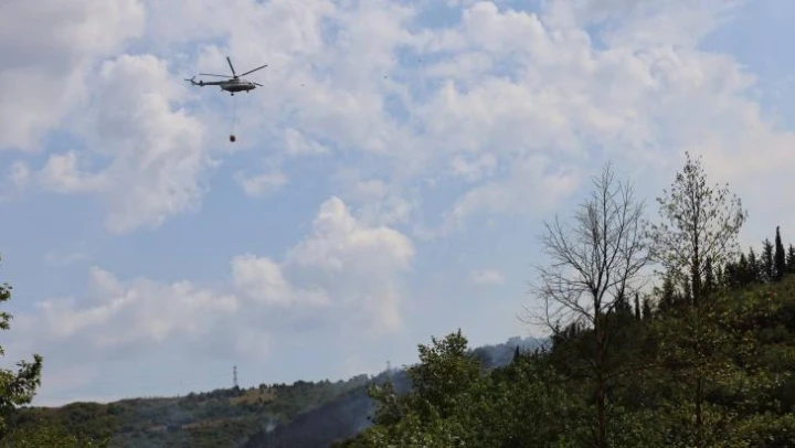 Kocaeli'de orman yangınına helikopterle müdahale sürüyor