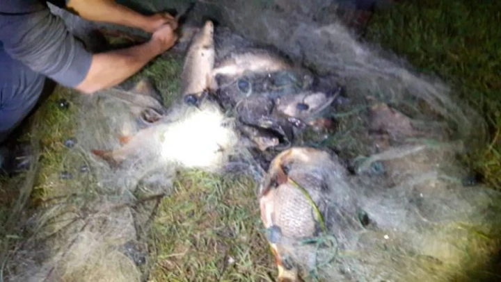 Konya'da baraj gölünde iftar ve sahur vakti arasında yapılan denetimlerde yasak olmasına rağmen kaçak balık avı yapmak için serildiği belirlenen onlarca metre ağ ele geçirildi.