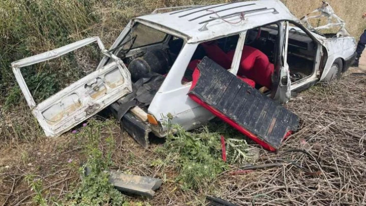 Manisa'da lastiği patlayan otomobil tarlaya devrildi, 2 kişi ölümden döndü