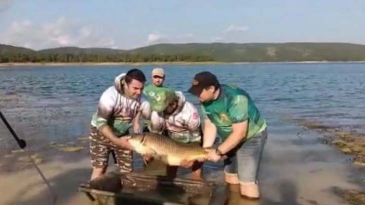 Çekmeköy Ömerli Barajı'nda balıkçıların oltasına 22 kilo 500 gram ağırlığındaki sazan balığı takıldı. Dev balığı gören balıkçılar gözlerine inanamadı. 'Balıklar bitmesin' diyen balıkçılar sürdürülebilir balıkçılık için sazanı yeniden denize bıraktı.