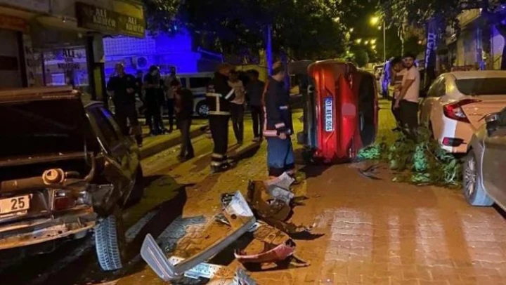 Siirt'te kontrolden çıkan bir otomobil, önce ağaca sonra ise park halindeki bir araca çarparak durabildi.
