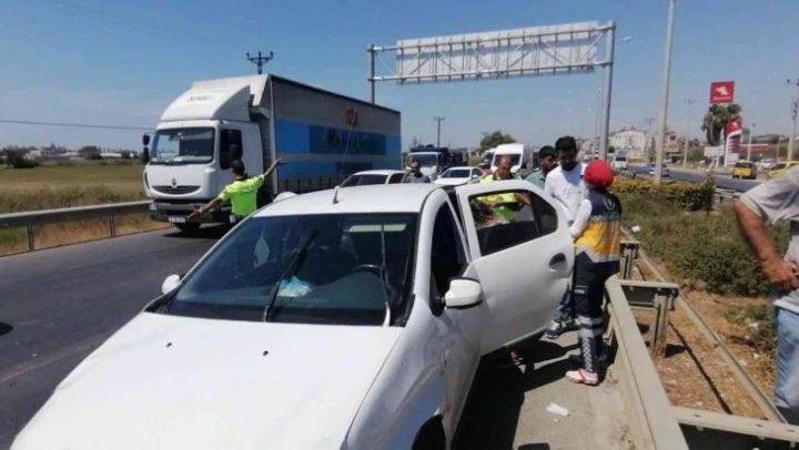 Antalya'da trafik lambalarına yaklaşırken yavaşlayan ticari taksiye, arkasından gelen otomobil çarptı. Otomobilin arka koltuğundaki hamile kadın kazadan etkilenmesine rağmen hastaneye gitmeyi kabul etmedi.