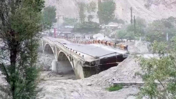 Pakistan'ın Gilgit-Baltistan eyaletinin Hunza bölgesindeki Karakurum Otoyolu üzerindeki Hassanabad Köprüsü, buzul gölünün taşması sonucu yaşanan selde yıkıldı. Hunza Polis Müfettişi Zahoor Ahmed yaptığı açıklamada, buzul gölünün dün sıcaklık nedeniyle erimeye başladığını ve meydana gelen selin köprüyü yıktığını belirtti. Eyalet polisi, köprünün yıkılmasının ardından trafiğin Sas Valley yolu üzerine yönlendirildiğini açıkladı. Çevredekiler tarafından kaydedilen görüntülerde, selin köprüyü yıkarak parçalarını sürüklediği görüldü.