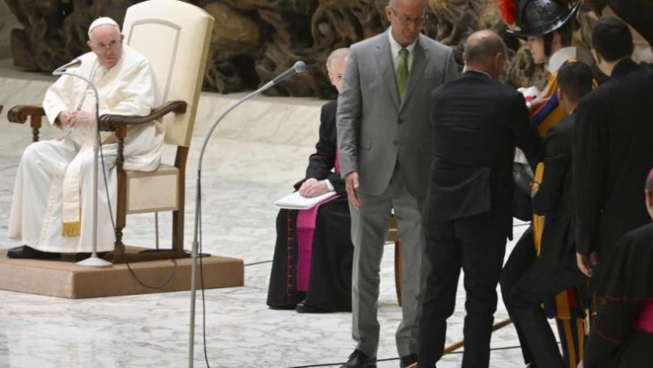 Katoliklerin ruhani lideri Papa Francis'in Vatikan'da gerçekleştirilen haftalık konuşmasında İsviçreli bir muhafız bayıldı.