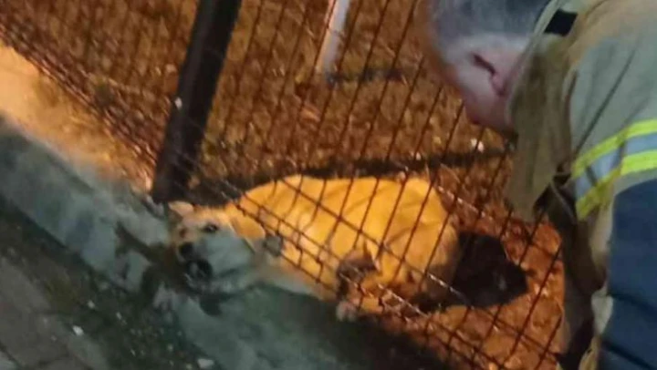 Bursa'nın İnegöl ilçesinde meydana gelen olayda parkın koruma tellerine sıkışan köpek itfaiye ekiplerince kurtarıldı.