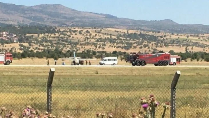 Uşak Havaalanı'nda piste iniş yapmak isteyen eğitim uçağının ön tekeri koptu. Meydana gelen kaza sonucunda piste kalarak yan dönen uçağın pilotu kazayı yara almadan atlattı.