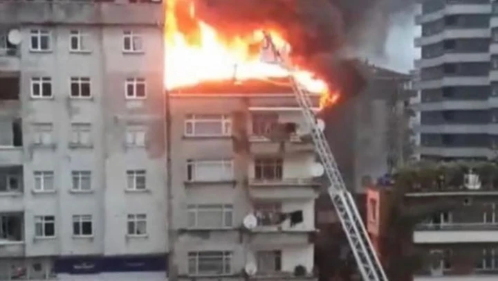 Rize'de binanın çatısında çıkan yangın paniğe neden oldu
