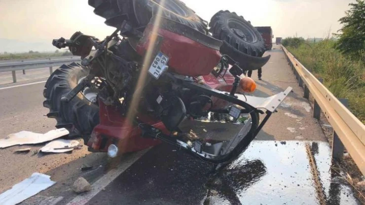 Manisa'nın Salihli ilçesinde traktör ile kamyon çarpışması sonucu meydana gelen kazada traktöre takılı emniyet demiri (Robs) sürücünün hayatını kurtardı.